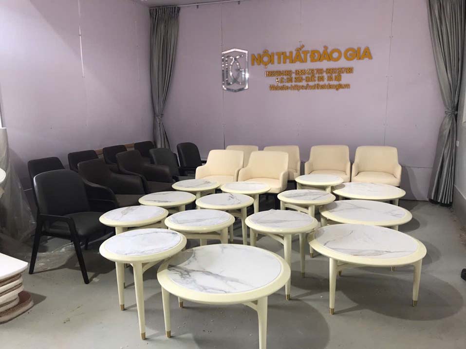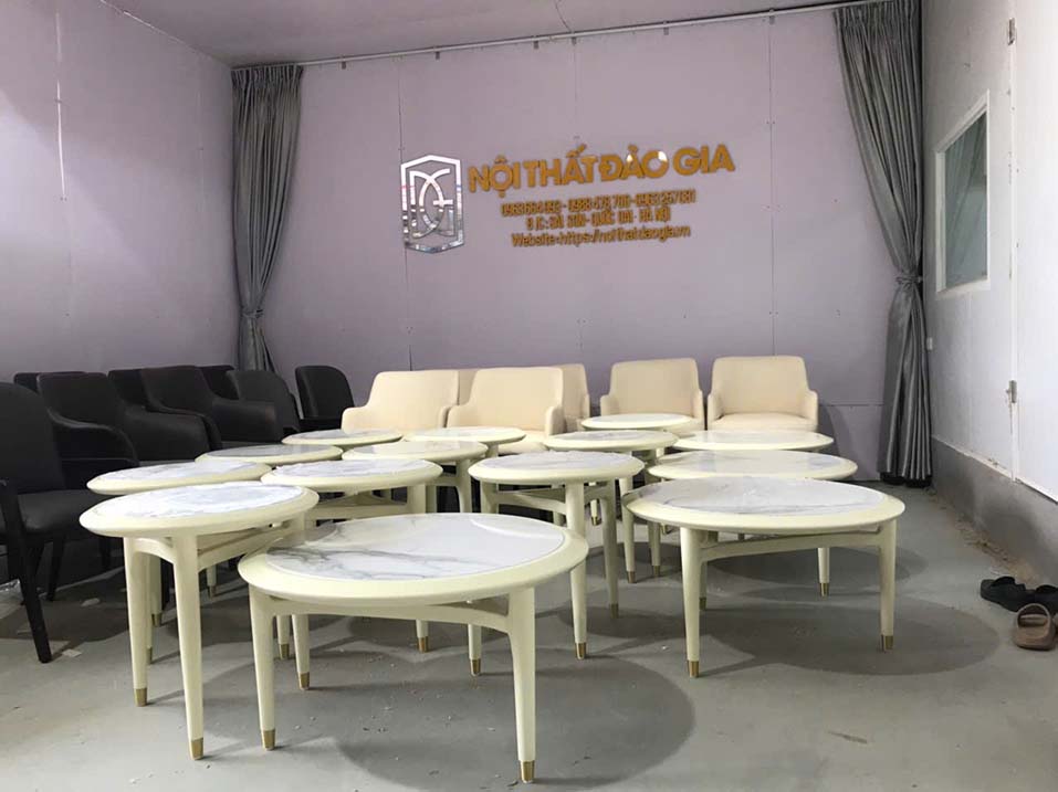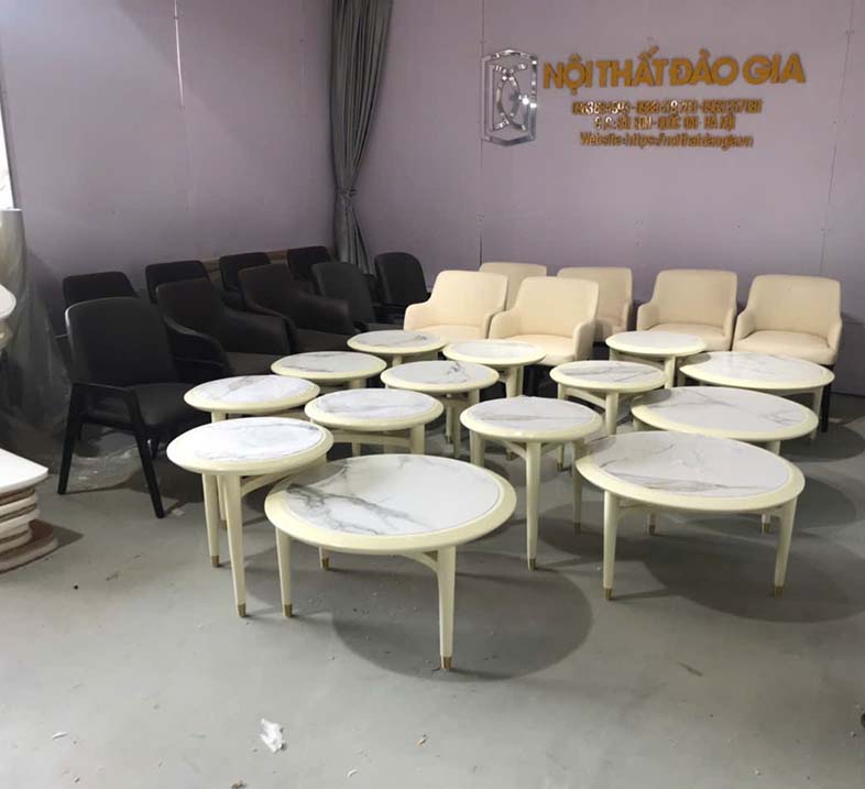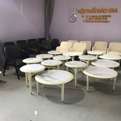 Thiết kế thanh lịch, khung gỗ sơn tĩnh điện chắc chắn, mặt đá sang trọng dễ vệ sinh, chống trầy xước, phù hợp cho không gian phòng khách, quán café, khách sạn, lounge cao cấp.