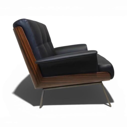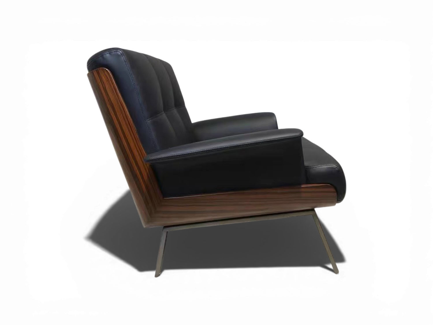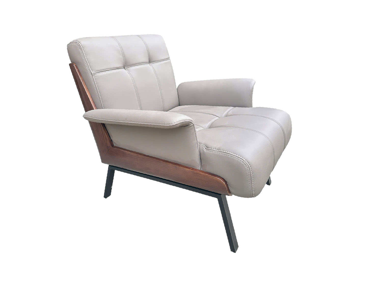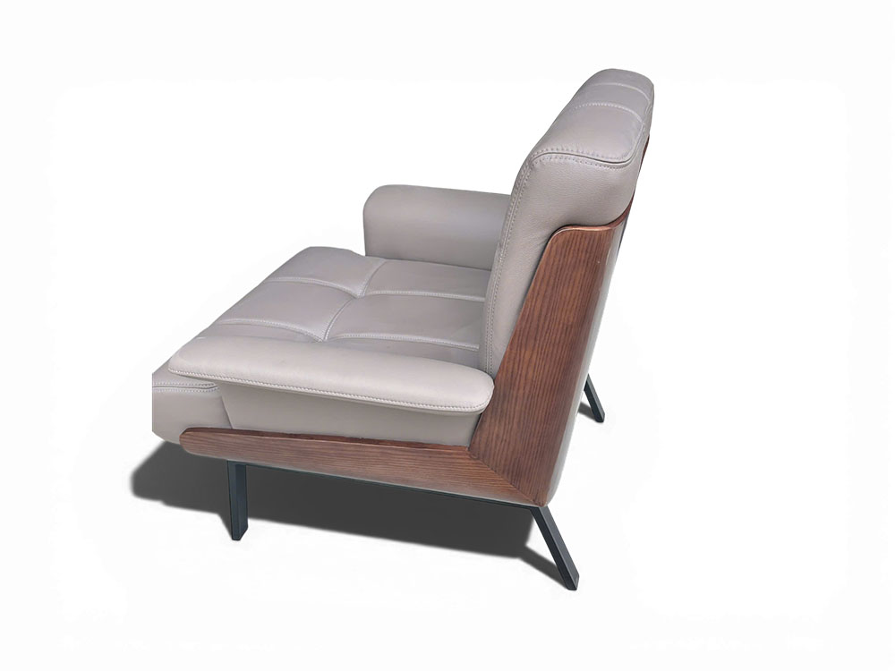 Ghế sofa đơn da thật sử dụng khung gỗ tự nhiên kết hợp chân kim loại sơn tĩnh điện, đảm bảo độ vững chắc và khả năng chịu lực tốt. Kết cấu khung giúp ghế đứng vững, không rung lắc trong quá trình sử dụng.