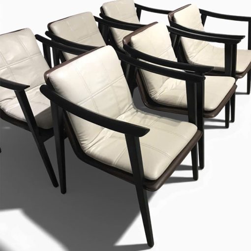 Ghế FYNN mang đậm dấu ấn thiết kế Bắc Âu (Scandinavian), là sự giao thoa giữa vẻ đẹp tối giản và sự tinh tế trong từng đường nét. Với tay vịn uốn cong độc đáo và phần lưng tựa liền khối bọc da cao cấp, FYNN không chỉ là một chiếc ghế – mà là một điểm nhấn nghệ thuật cho không gian sống.