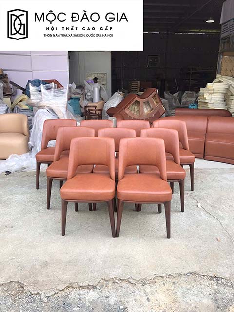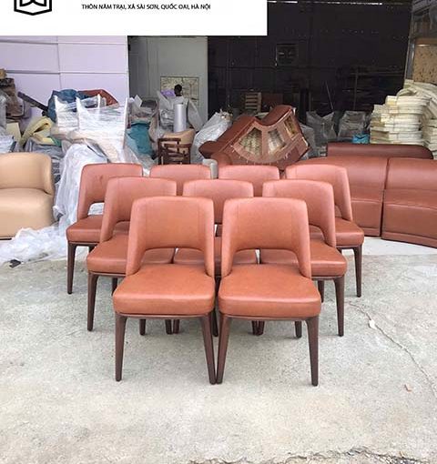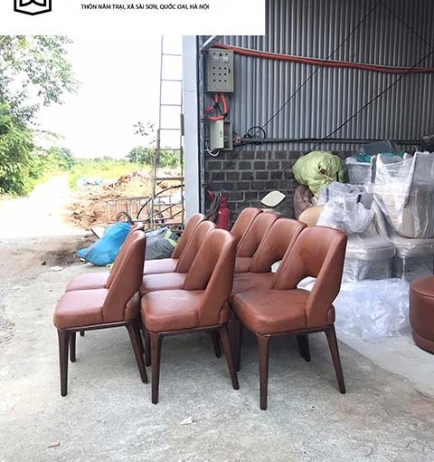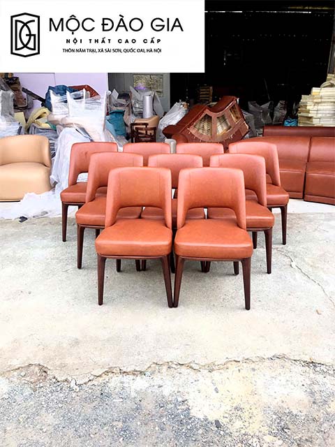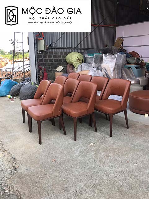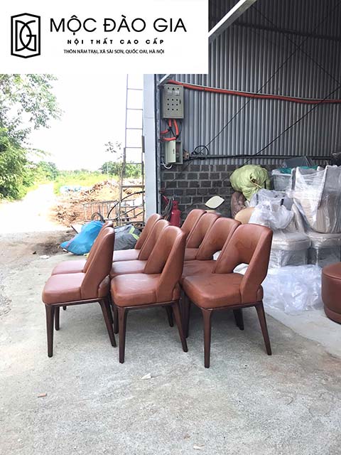 Trong thiết kế nội thất phòng ăn hiện đại, ghế ăn bọc da luôn là sự lựa chọn hàng đầu nhờ sự tiện dụng, sang trọng và dễ kết hợp. Mẫu ghế ăn bọc da màu nâu cao cấp trong hình là minh chứng rõ nét cho sự cân bằng giữa thẩm mỹ và công năng, mang lại không gian ấm áp, hiện đại và tinh tế.