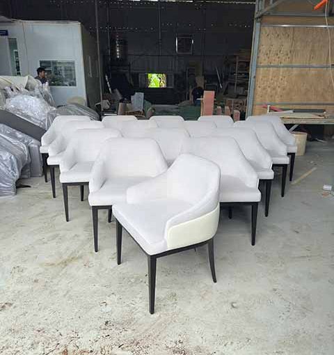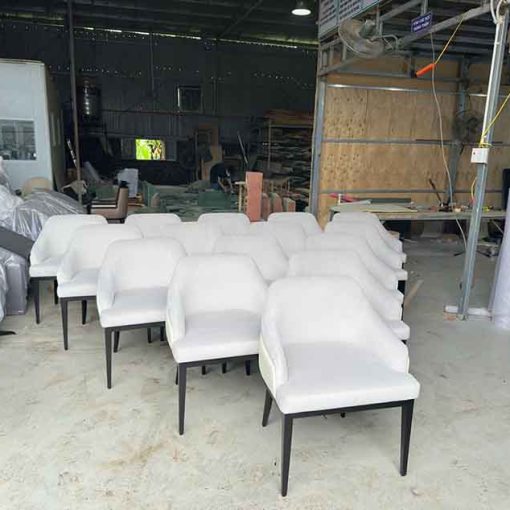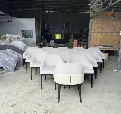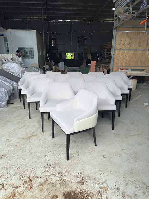 Phần khung và chân ghế được làm từ gỗ tự nhiên đã qua xử lý, đảm bảo độ bền chắc và chịu lực tốt. Mỗi chiếc ghế trước khi bọc đều trải qua nhiều khâu kiểm tra tại xưởng để đảm bảo độ chính xác, không cong vênh, không mối mọt và độ hoàn thiện đạt chuẩn. Với kết cấu vững chắc, ghế có thể chịu được tần suất sử dụng cao – rất phù hợp cho những không gian đông người như nhà hàng hoặc quán café.
