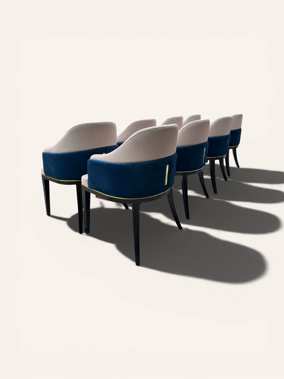 Ghế ăn bọc nỉ cao cấp thiết kế hiện đại, bọc nỉ mềm mại, chân gỗ chắc chắn, phù hợp phòng ăn gia đình, nhà hàng, khách sạn và không gian sang trọng.