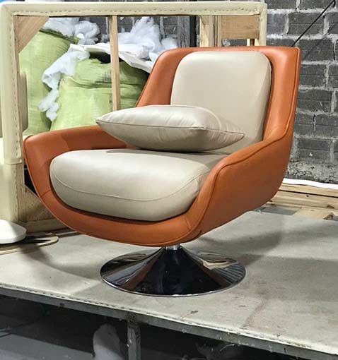 Ghế Armchair Xoay Bọc Da – Nỉ Phối Màu Cam Kem Hiện Đại