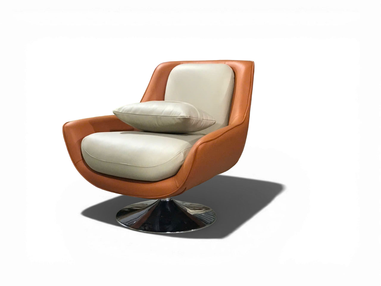 Ghế Armchair Xoay Bọc Da – Nỉ Phối Màu Cam Kem Hiện Đại