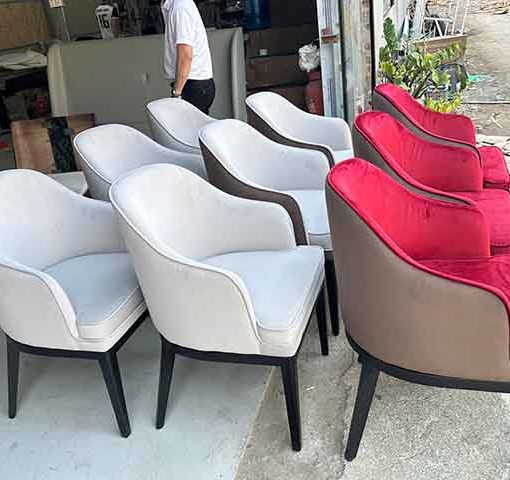 Tất cả các công đoạn từ làm khung, bọc vải đến hoàn thiện đều được thực hiện trực tiếp tại xưởng, giúp kiểm soát chất lượng đồng đều giữa các ghế.