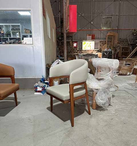 Phần khung gỗ tự nhiên đóng vai trò là “linh hồn” của mẫu ghế. Mỗi chi tiết gỗ đều được chọn lọc kỹ càng, trải qua quy trình sấy chuyên nghiệp giúp tăng tuổi thọ sản phẩm. Kỹ thuật xử lý mộng gỗ tiên tiến giúp ghế không chỉ chắc chắn mà còn chịu được tần suất sử dụng cao – điều kiện bắt buộc trong các dự án nhà hàng, resort và quán cafe đông khách.