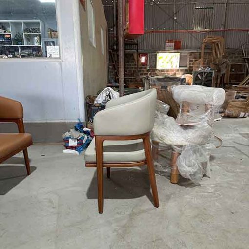 Bên cạnh đó, sự phối hợp giữa hai tone màu nâu bò và kem sữa trong ảnh mang đến cho khách nhiều lựa chọn hơn. Màu nâu bò ấm áp, sang trọng – phù hợp không gian gỗ, không gian tối hoặc nhà hàng phong cách Nhật – Hàn. Trong khi đó, màu kem sữa lại phù hợp với không gian sáng, phong cách Bắc Âu hoặc nhà hàng – cafe hiện đại. Dù là tone màu nào, dáng ghế vẫn tôn trọn vẻ sang trọng và cao cấp.