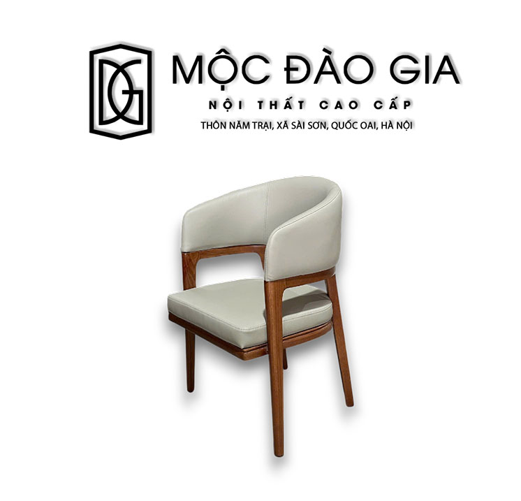 Mẫu ghế gỗ bọc da lưng vòng của Nội Thất Đào Gia là sự giao hòa tinh tế giữa nghệ thuật thiết kế hiện đại và giá trị sử dụng lâu dài. Khi nhìn trực diện, ghế sở hữu một form dáng cực kỳ mềm mại với phần lưng mở rộng hai bên, tạo thành vòng cung nâng đỡ tự nhiên cho vai và phần lưng của người ngồi. Kiểu thiết kế bo cong này vừa tạo cảm giác thân thiện vừa mang lại sự sang trọng rất riêng mà không phải mẫu ghế nào cũng có được.