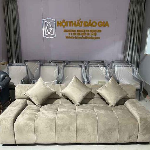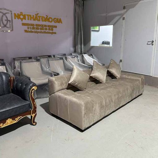 Mẫu sofa băng dáng phồng nguyên khối trong hình là một trong những thiết kế nổi bật nhất của Nội Thất Đào Gia, dành riêng cho những không gian yêu cầu sự sang trọng, mềm mại nhưng vẫn giữ được vẻ hiện đại, mạnh mẽ và đẳng cấp.