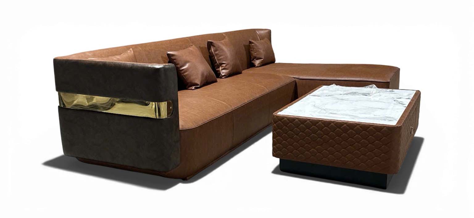 Thiết kế sofa chữ L bọc da hiện đại tối ưu không gian