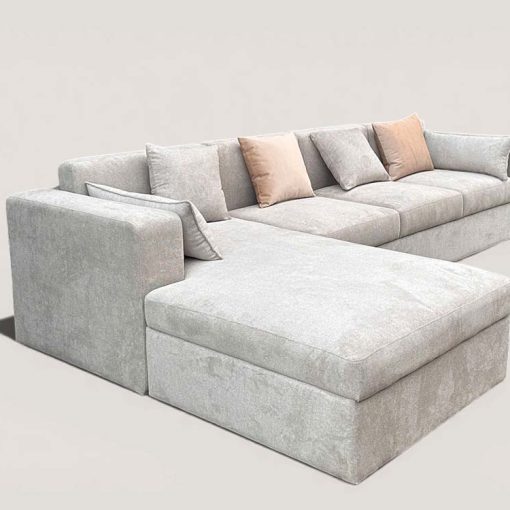 Không chỉ là món đồ nội thất, sofa nỉ cao cấp chữ L còn là điểm nhấn cho không gian sống. Phần ghế góc có thể dùng để nằm đọc sách, xem phim hoặc thư giãn sau ngày dài làm việc. Với thiết kế mở, ghế dễ dàng phối cùng bàn trà gỗ hoặc bàn mặt đá, mang lại tổng thể sang trọng và hiện đại.
