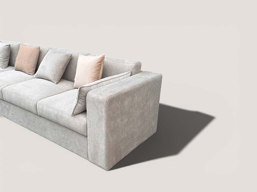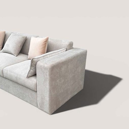 Sofa có dáng chữ L tiện dụng, giúp tận dụng tối đa diện tích phòng khách mà vẫn tạo không gian mở, rộng rãi. Phần tay ghế vuông vắn, đệm ngồi dày dặn cùng tựa lưng rời mang đến vẻ đẹp cân đối và hiện đại.