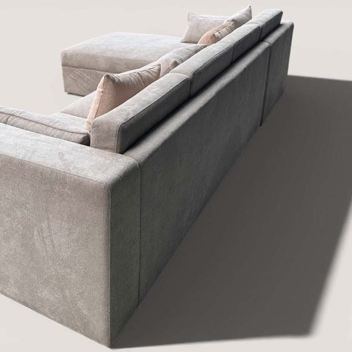 Ngoài ra, sofa có thể tháo rời phần đệm tựa và bọc ghế, giúp vệ sinh hoặc thay mới dễ dàng. Các đường chỉ may kép giúp form ghế luôn phẳng, tạo cảm giác chắc chắn và cao cấp.